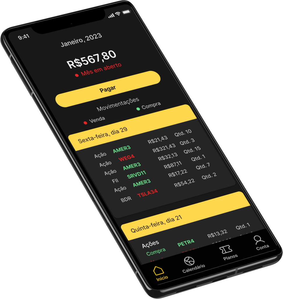 Calculamos ações, fundos imobiliários, BDRs, ETFs, mercado futuro e opções.